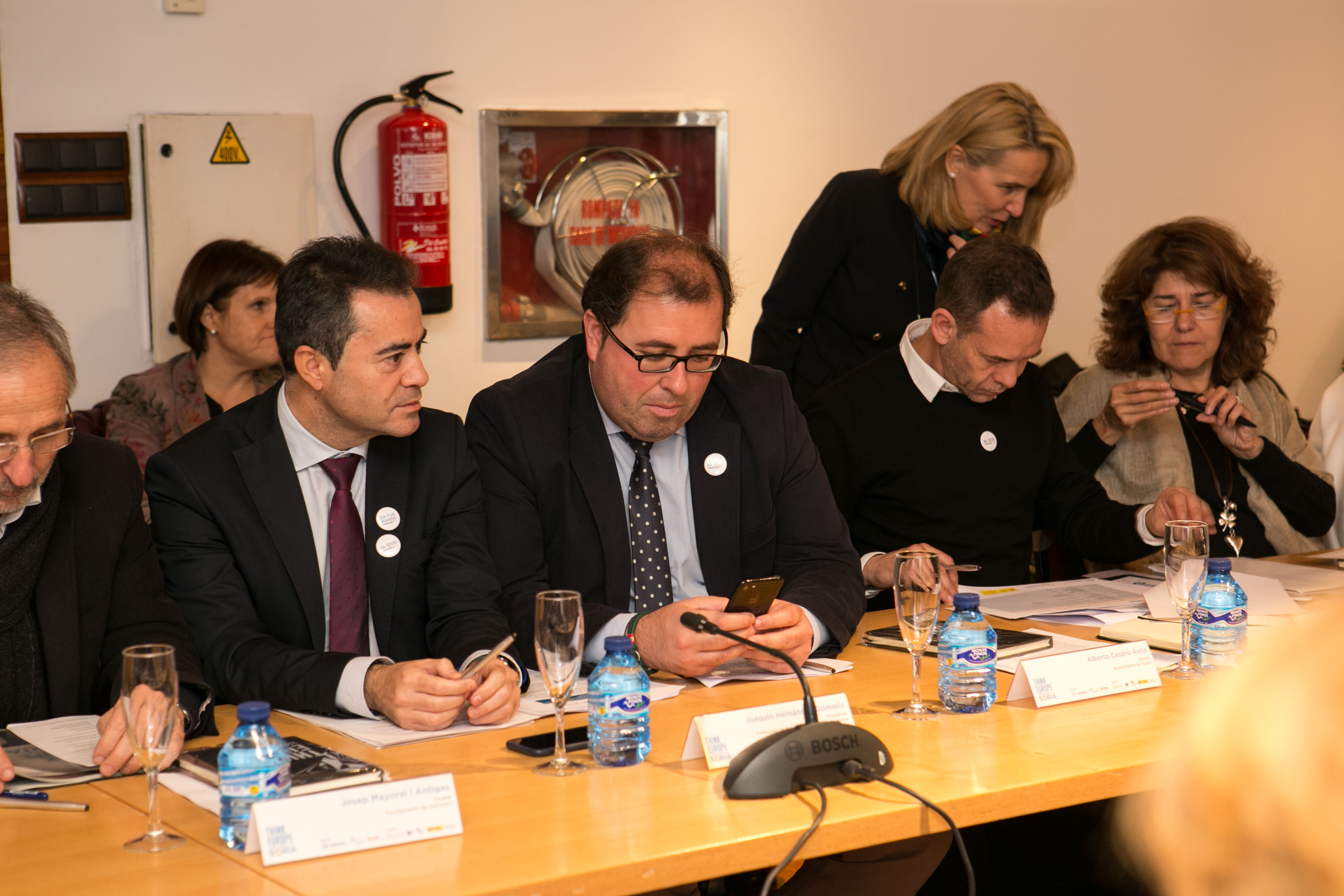 Luis Alfonso Rey de las Heras, Presidente de la Diputación de Soria; Stefano Bonaccini, Presidente del Consejo Europeo de Municipios y Regiones (CMRE); Roberto Bermúdez de Castro, Secretario General para las Administraciones Territoriales y Carlos Martínez Mínguez, Alcalde de Soria