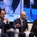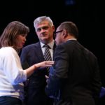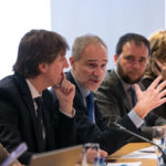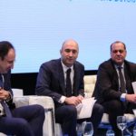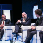 Miguel Ángel Moratinos, Presidente de la Red Española para el Desarrollo; Stefano Bonaccini, Presidente del Consejo Europeo de Municipios y Regiones (CMRE) y Frédéric Vallier, Secretario General de CMRE