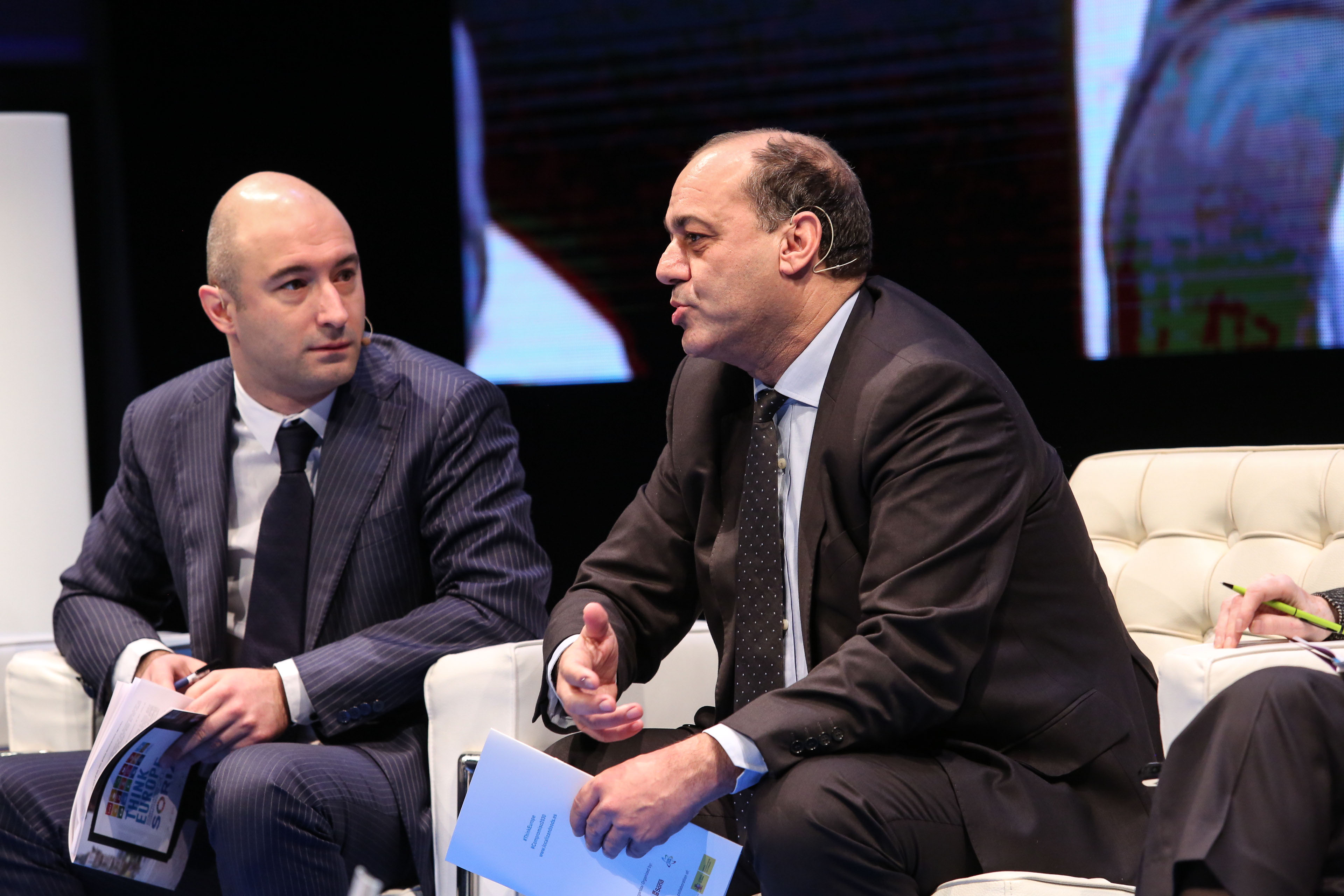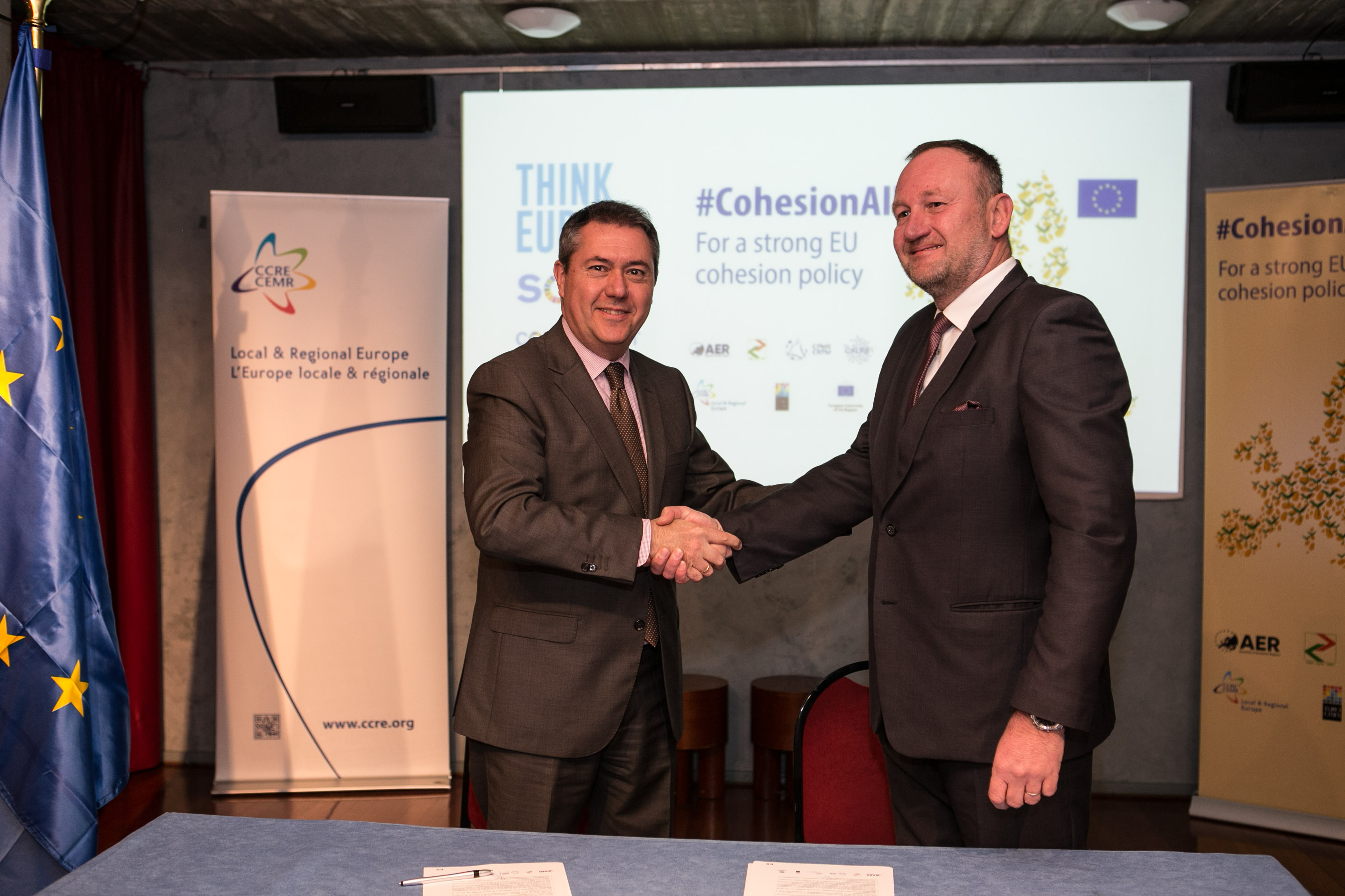 Stefano Bonaccini, Presidente del Consejo Europeo de Municipios y Regiones (CMRE) y Roberto Bermúdez de Castro, Secretario General para las Administraciones Territoriales