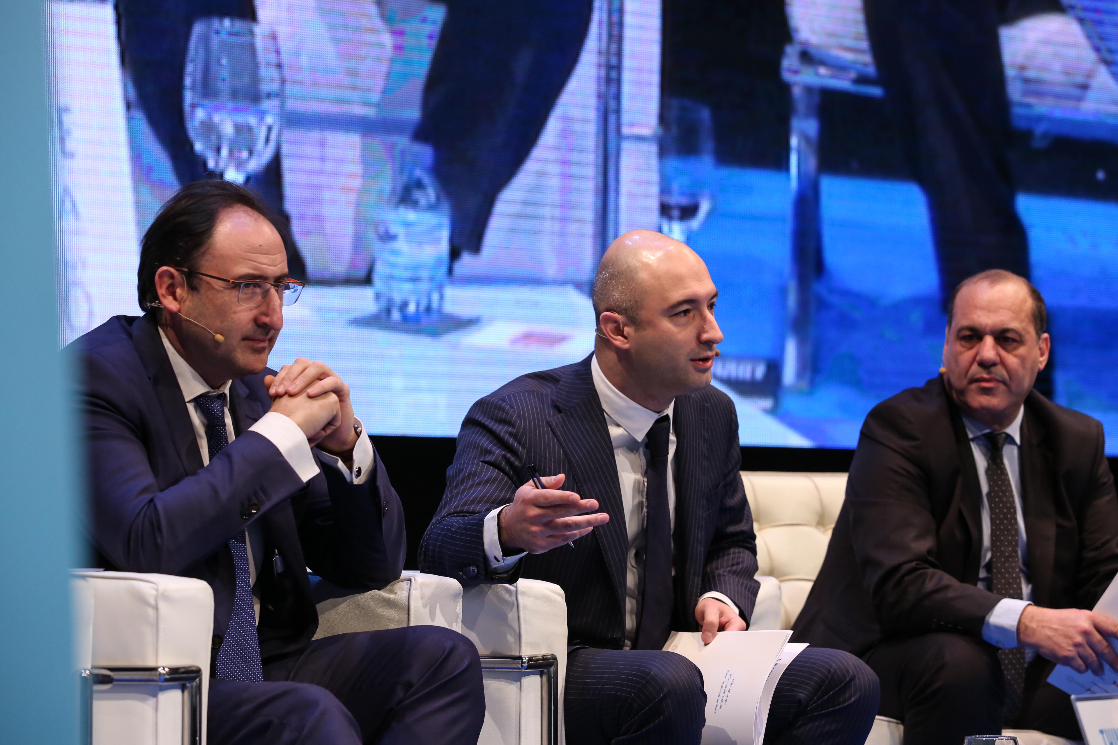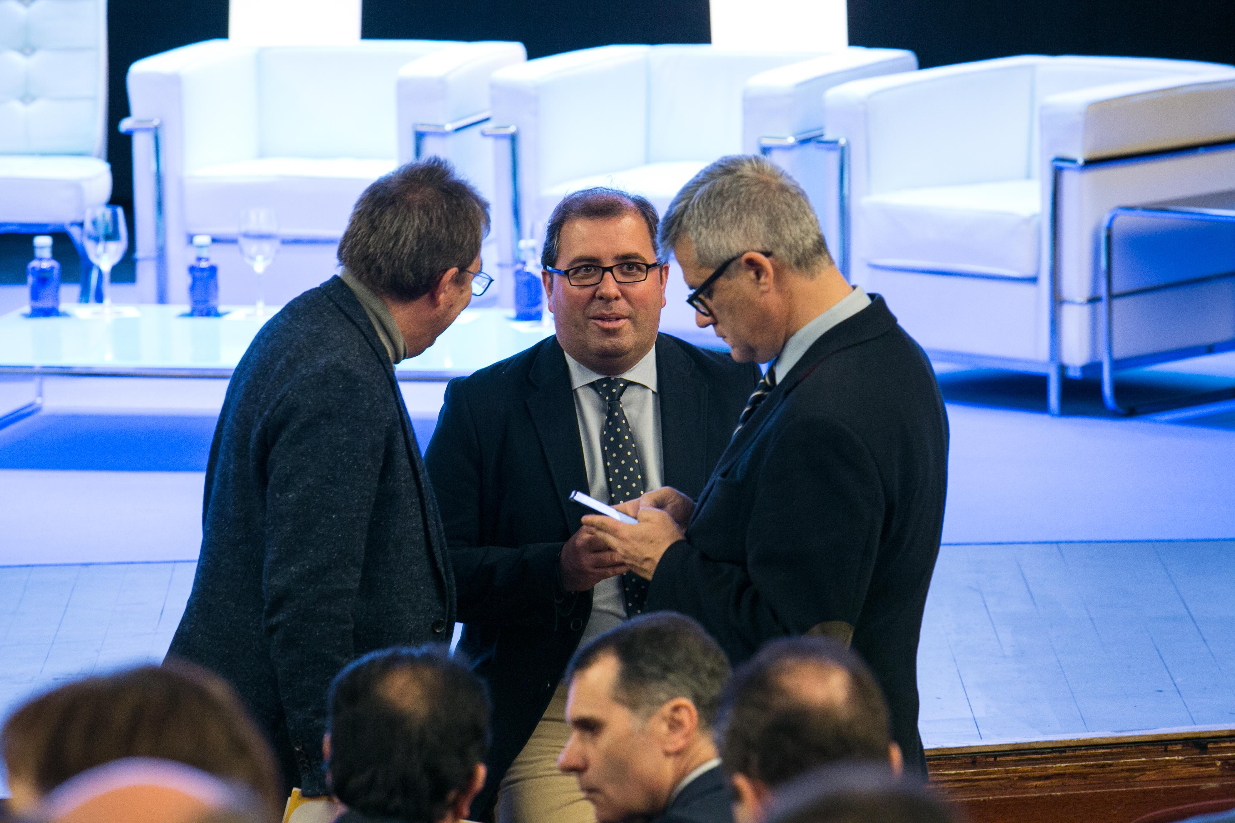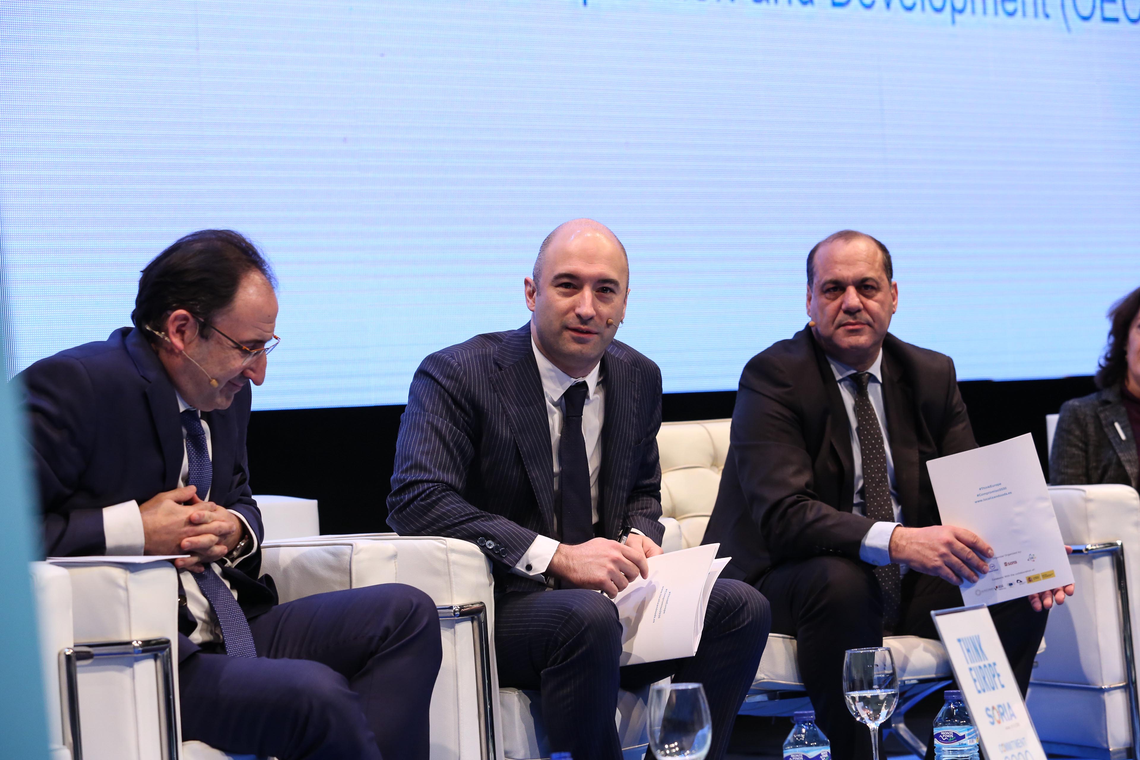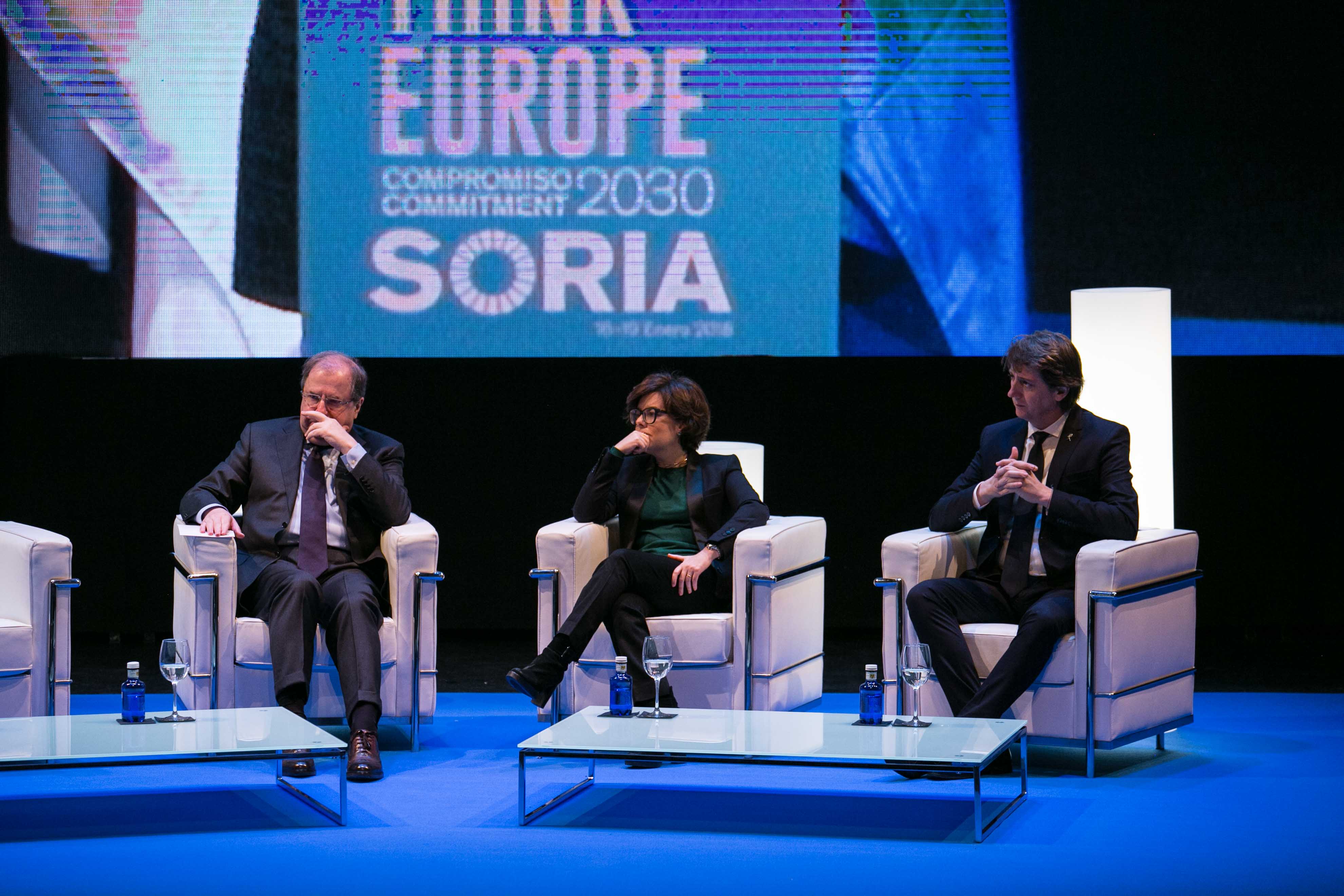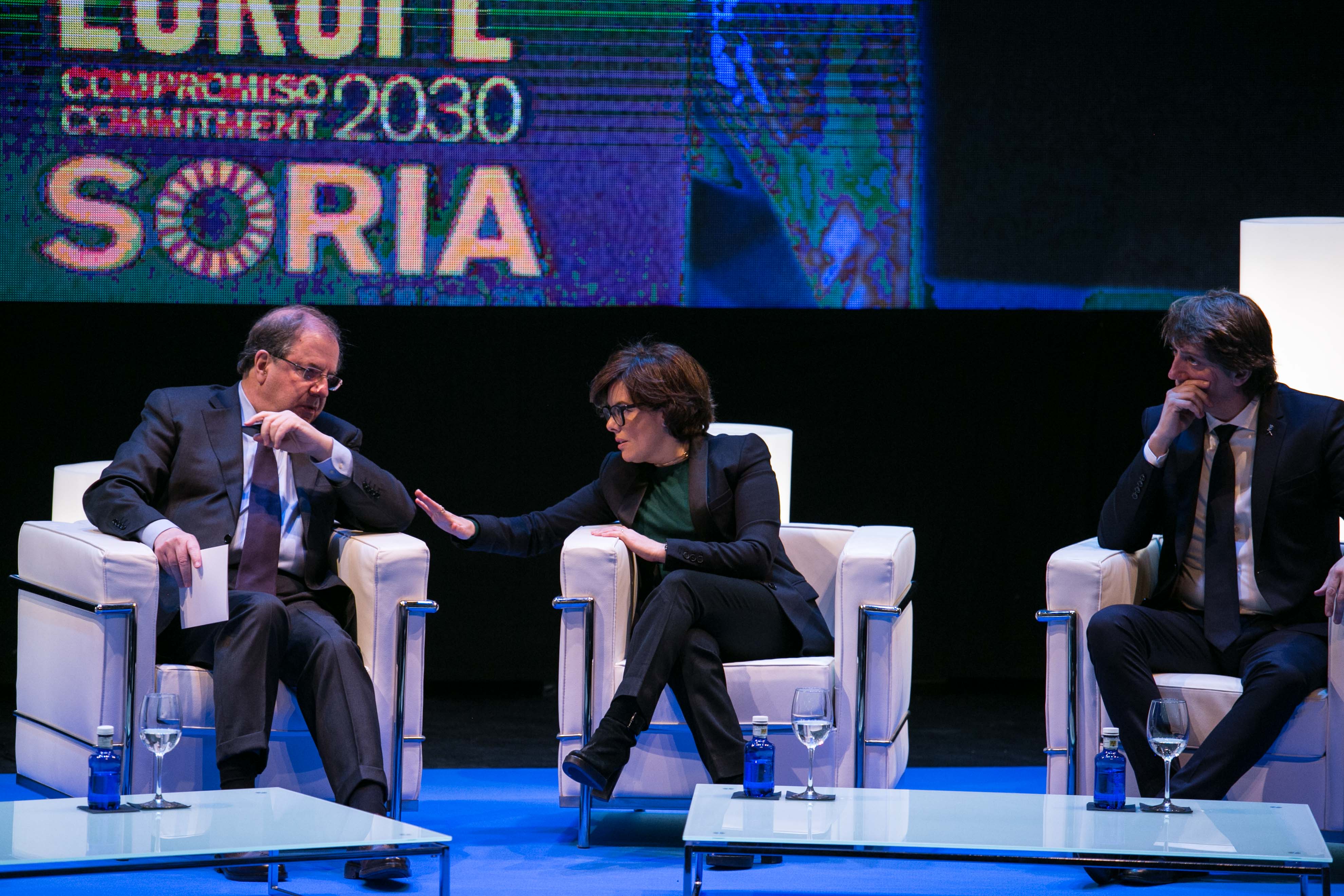 Carlos Martínez Mínguez, Alcalde de Soria; Roberto Bermúdez de Castro, Secretario General para las Administraciones Territoriales y Stefano Bonaccini, Presidente del Consejo Europeo de Municipios y Regiones (CMRE)