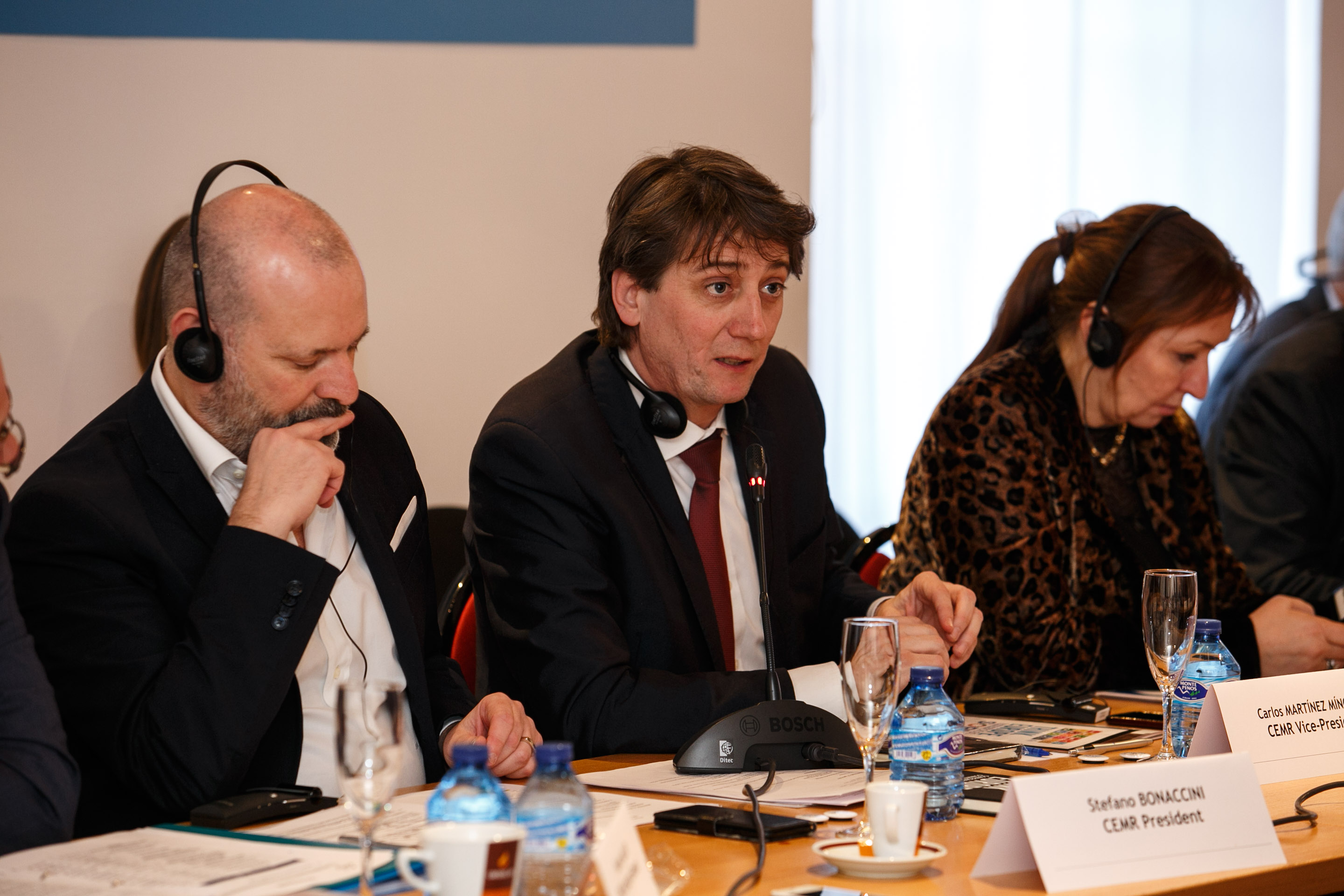 Frédéric Vallier, Secretario General de CMRE y José Manuel Herrero Mendoza, Secretario General y Comisionado para las Víctimas del Terrorismo de la Junta de Castilla y León y Griselda Pastor Llopart, Corresponsal en Bruselas de Cadena SER