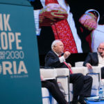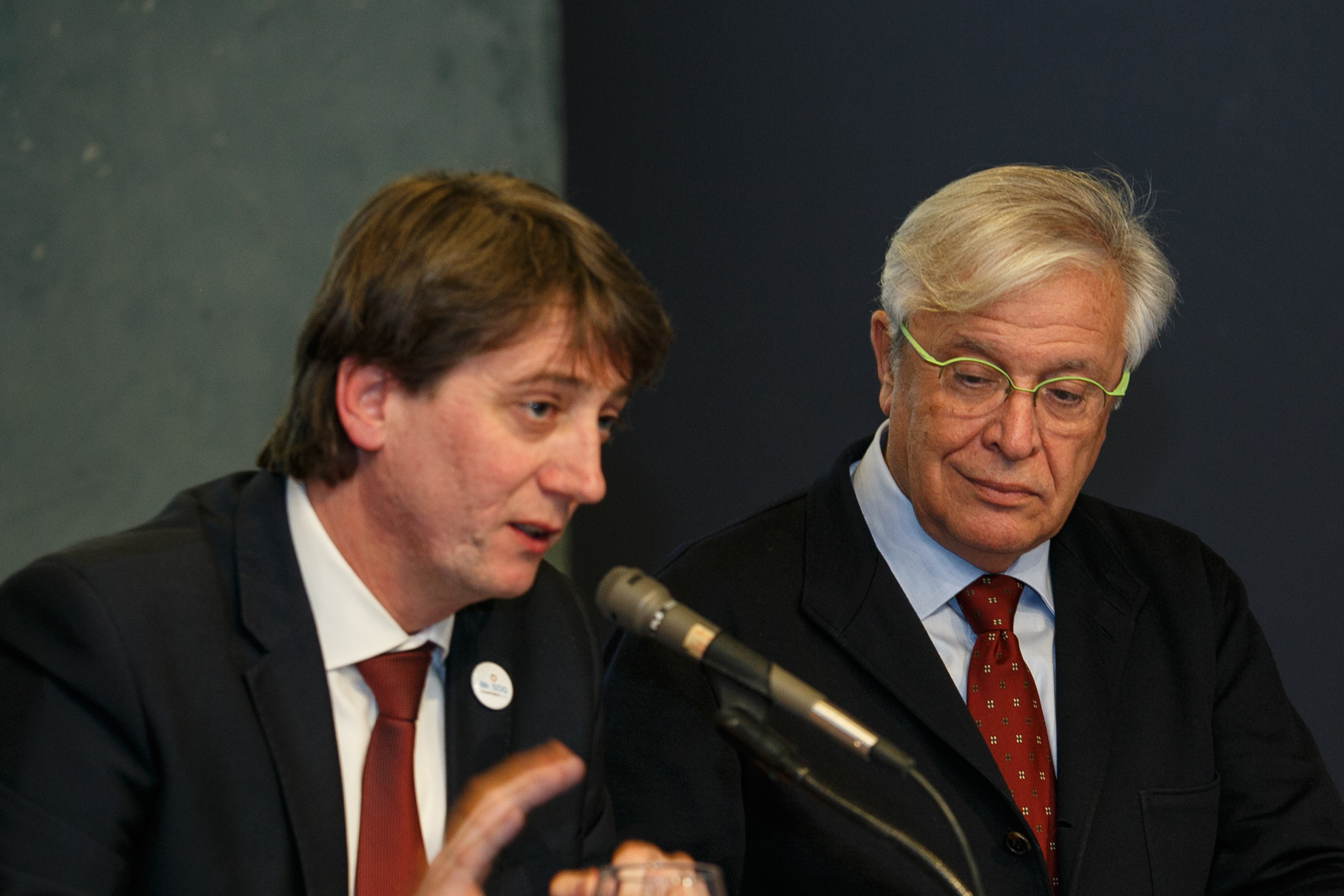 Miguel Ángel Moratinos, Presidente de la Red Española para el Desarrollo y Stefano Bonaccini, Presidente del Consejo Europeo de Municipios y Regiones (CMRE)