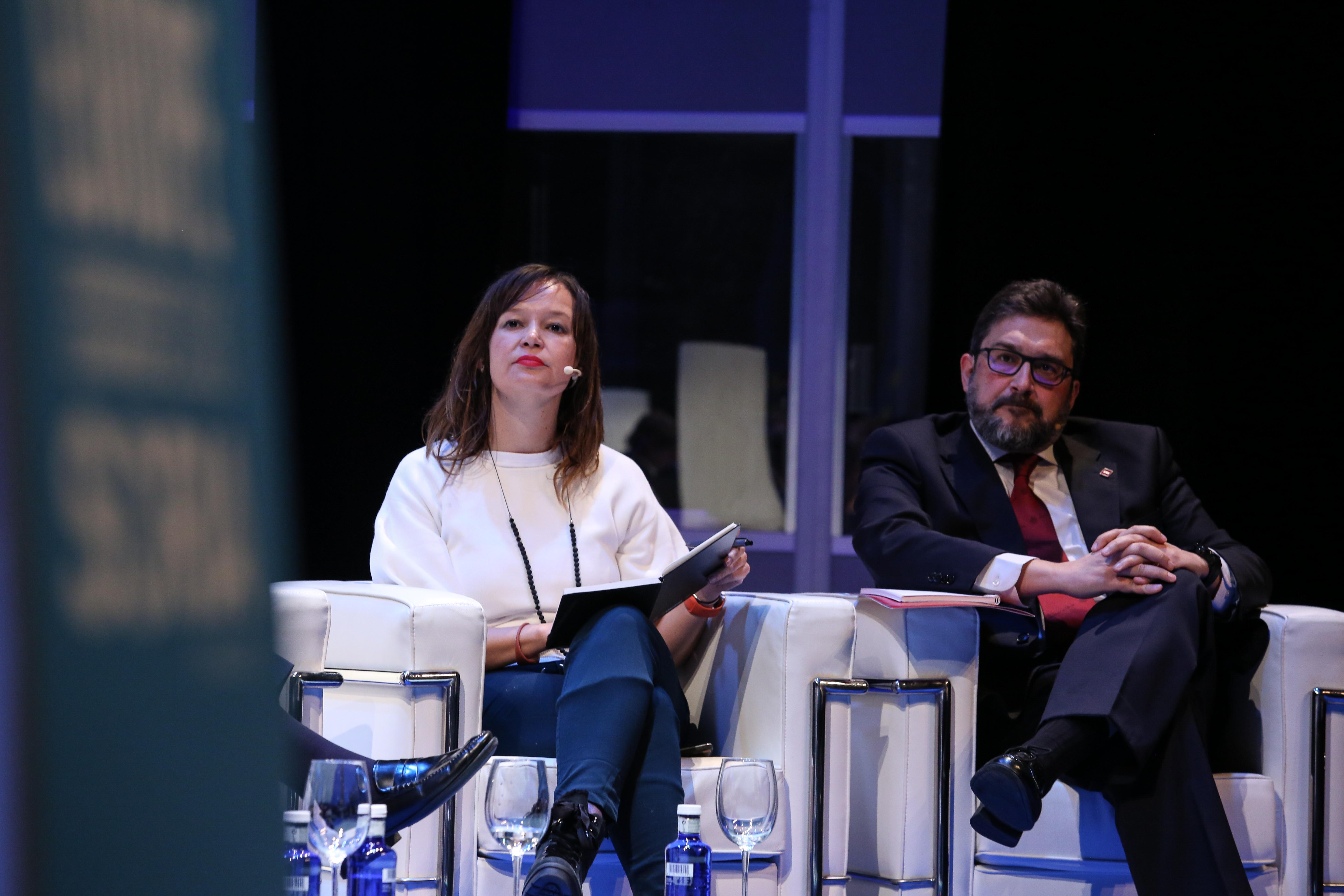 Carola Gunnarsson, Portavoz de Cohesión del CMRE y Alcaldesa de Sala (Suecia) y Claudi Pérez Pallejá, Corresponsal de 'El País' en Bruselas