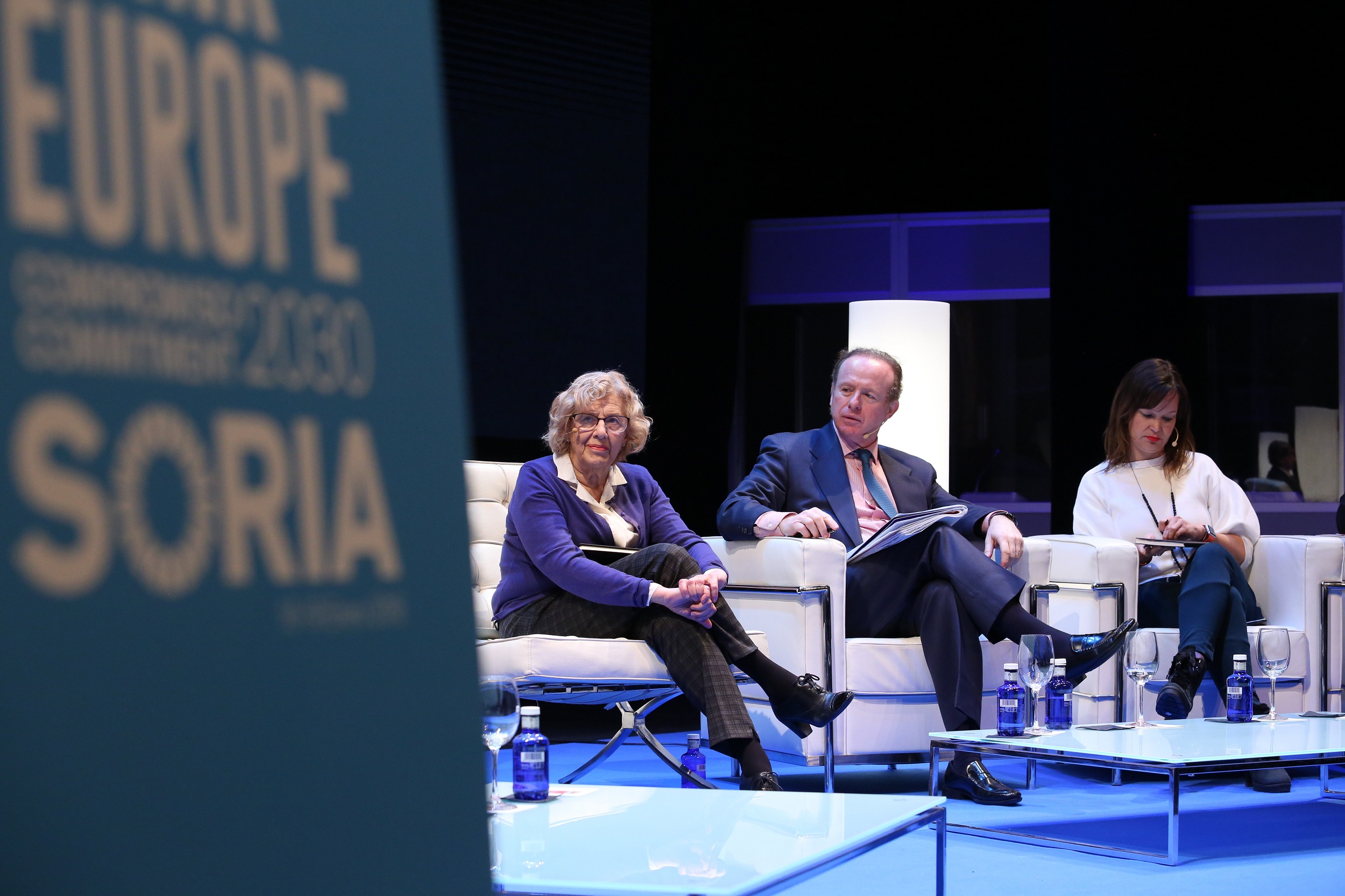 Joan Clos, Exdirector Ejecutivo de ONU Habitat; Carlos Martínez Mínguez, Alcalde de Soria y Manuela Carmena, Alcaldesa de Madrid